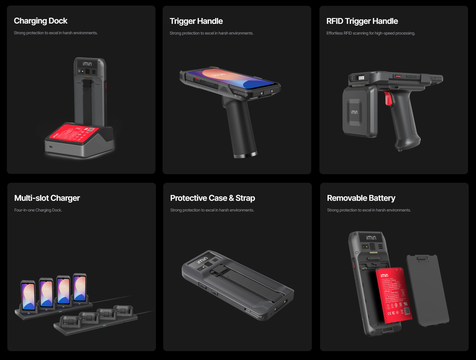 | Optional Items | Optional Charging dock, Multi-slot Charger, Trigger Handle, RFID Trigger, HandleProtective Case, Spare Battery, Strap |